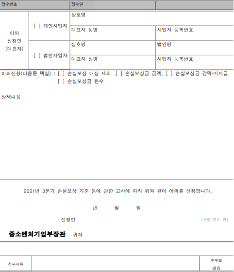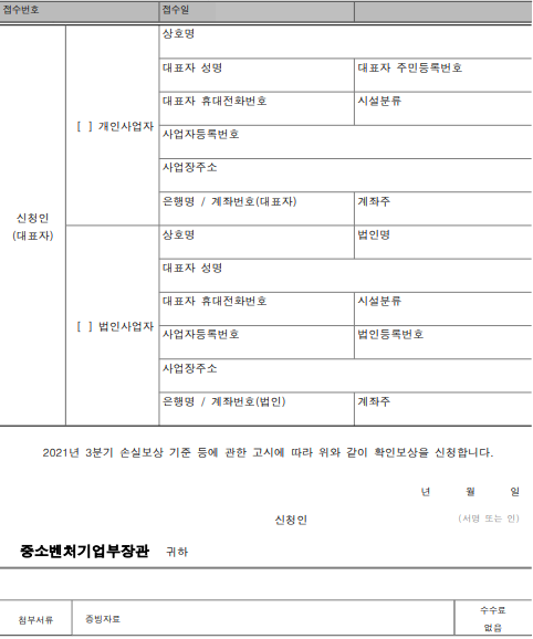 ■ 2021년 3분기 손실보상 기준 등에 관한 고시 [별지 제2호서식]