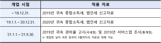◇ ’19년 7~9월 중 개업하여 ’19년 인프라매출액을 반영하는 것이 적합하지 않은 경우