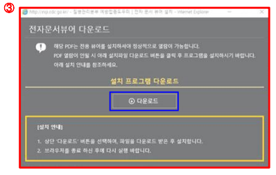 ➌ 전자문서 뷰어 다운로드 팝업 창