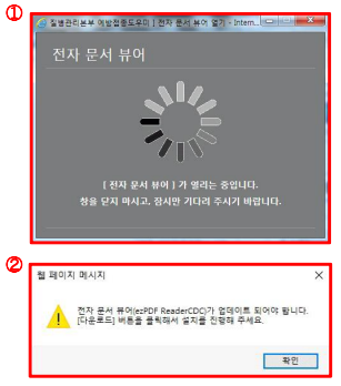 ➊ 전자문서 뷰어 팝업 창 ( 전자문서 뷰어가 실행되기 전까지 닫지 마세요! )