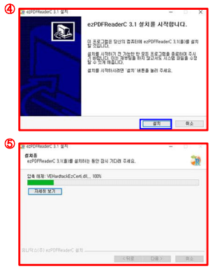 ➍ ezPDFReaderCDC 3.1 버전 설치 안내 → [설치] 버튼 클릭