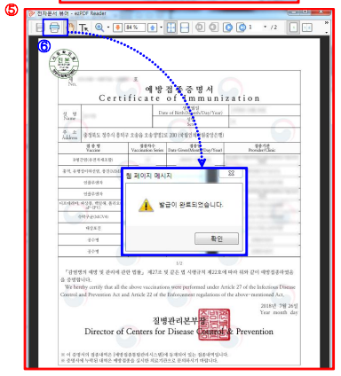 ❻ [문서출력] 버튼 클릭 : 상단의 [프린트] 버튼 클릭 → 출력 → 발급완료