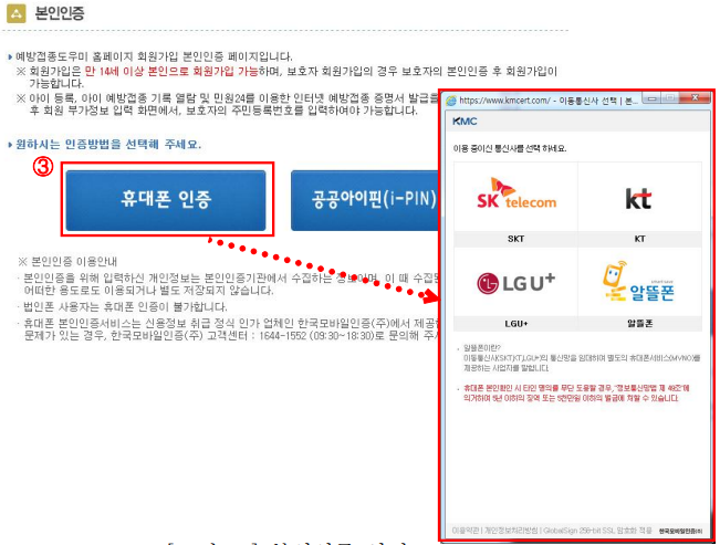 ❸ 휴대폰 인증 또는 공공아이핀 인증