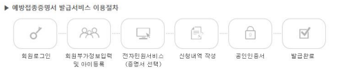 ○ 예방접종도우미 사이트 내 전자민원서비스 메뉴를 사용하기 위해 필요한 절차를 제공