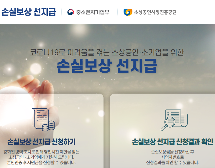 소기업과 소상공인을 위한 신종 코로나바이러스 감염증(코로나 19) 손실보상금 선지급 신청
