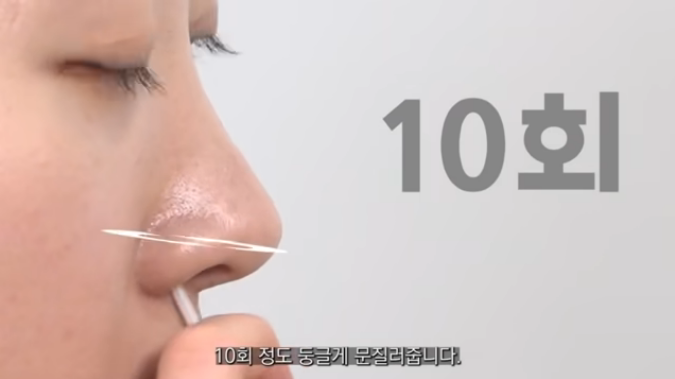 3. 면봉은 양쪽 콧구멍 안쪽 표면에 1.5~2cm 가량 넣고