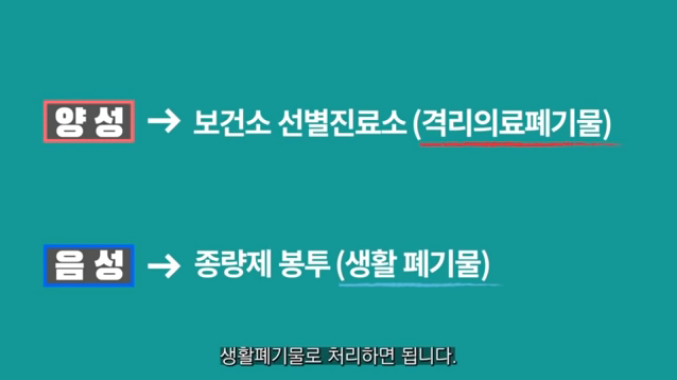 양성이 나온 자가진단 키트 재료 처리는