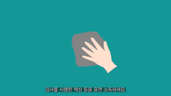 검사를 시행한 책상 등을 표면 소독하세요.