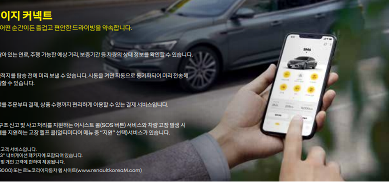 • SM6 2023년형부터 EASY CONNECT 9.3” 내비게이션에서 케이블 연결 없이 무선으로 애플 카플레이를 사용할 수 있습니다. (무선 안드로이드 오토는 소프트웨어 업데이트로 추후 제공 예정)