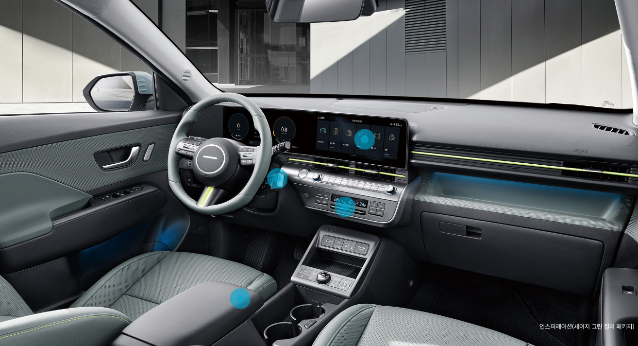 컬러 포인트 적용, 에어벤트 노브 및 가니쉬 컬러 포인트 적용, 스티어링 휠 키 컬러 및 포인트 컬러 가니쉬 적용