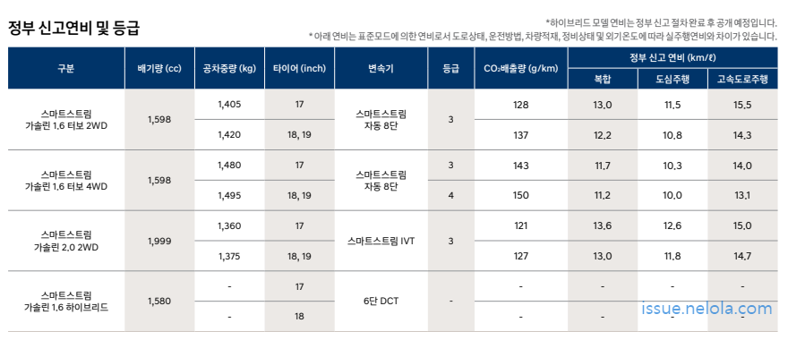코나 2023 연비 및 등급