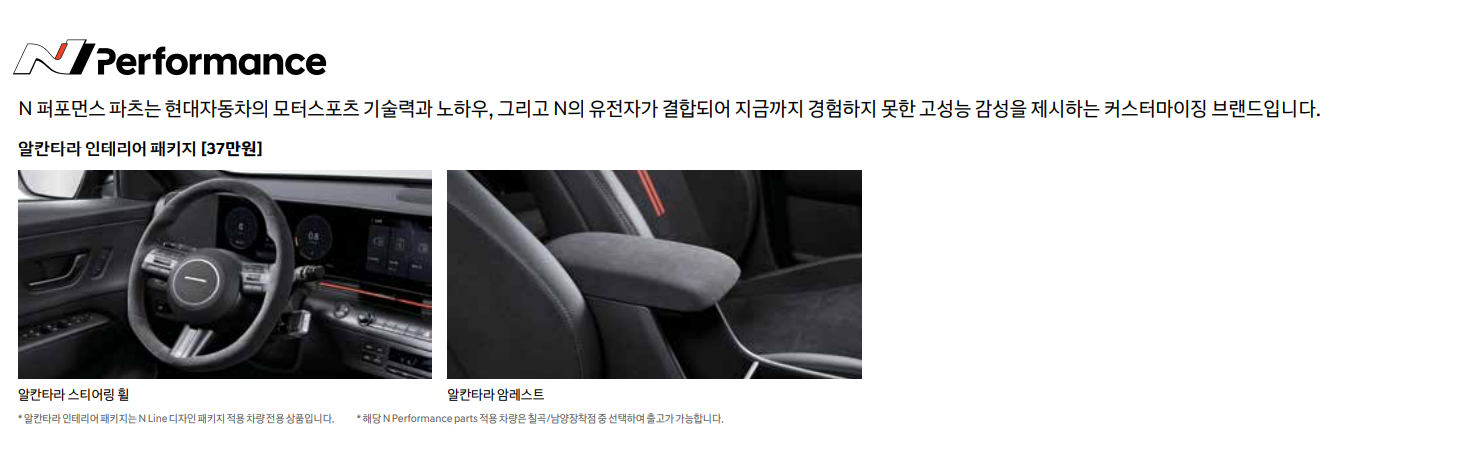 ※ N Line 디자인 패키지 적용 시, 프리미엄 트림 N Line 전용 디자인 인조가죽 시트 적용,