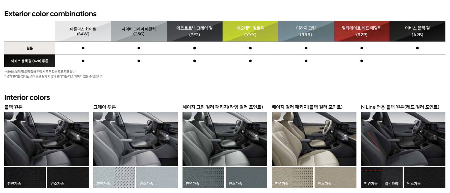 코나 외장 및 내장 Exterior color combinations / Interior colors