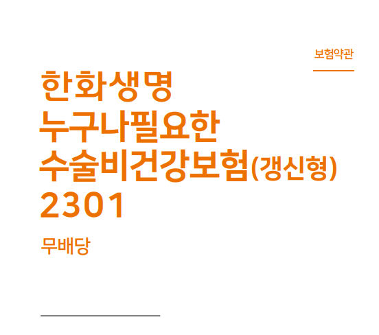 한화생명 누구나필요한 수술비건강보험(갱신형) 2301 무배당 보험약관